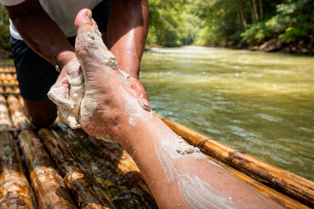 The limestone massage has become one of the most talked-about unexpected experiences in Jamaican tourism, and it is easy to understand why. Jamaica’s rivers run over limestone bedrock, and centuries of water movement have produced smooth, pale stones with a naturally fine, slightly abrasive texture. Raftsmen and riverside attendants at both Martha Brae and Lethe have long used these stones to offer what amounts to a completely natural exfoliation treatment — a foot and leg scrub, sometimes more if the guest is comfortable requesting it, performed on the raft itself or at a riverside stop.
